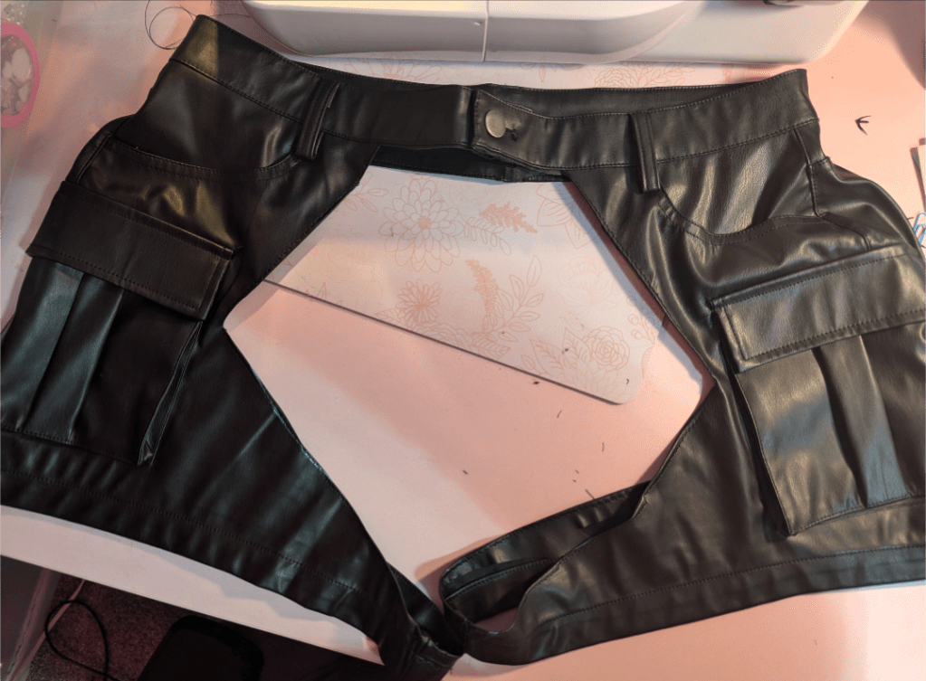 Pleather shorts altered into chaps for a western themed burlesque dance
